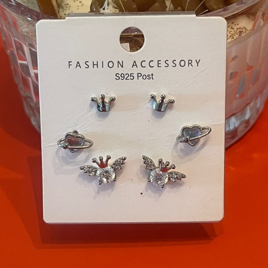 6’lı gümüş ve gold renklerde taç detaylı çelik küpe