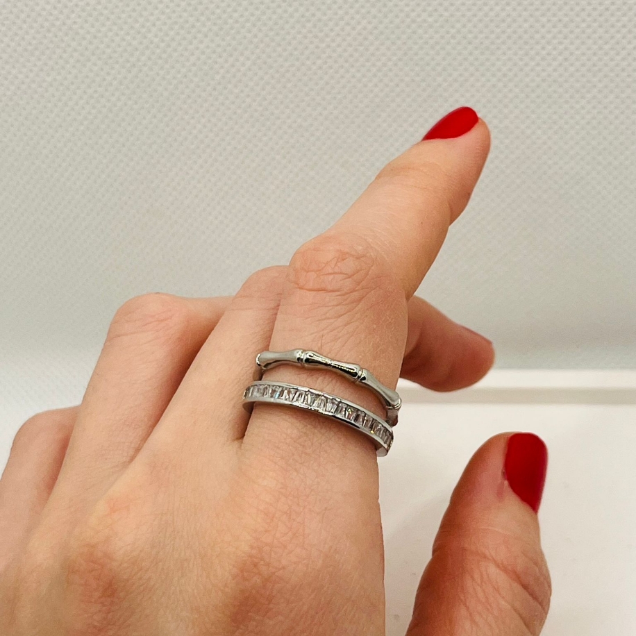 çift sıra gümüş renk yüzük
