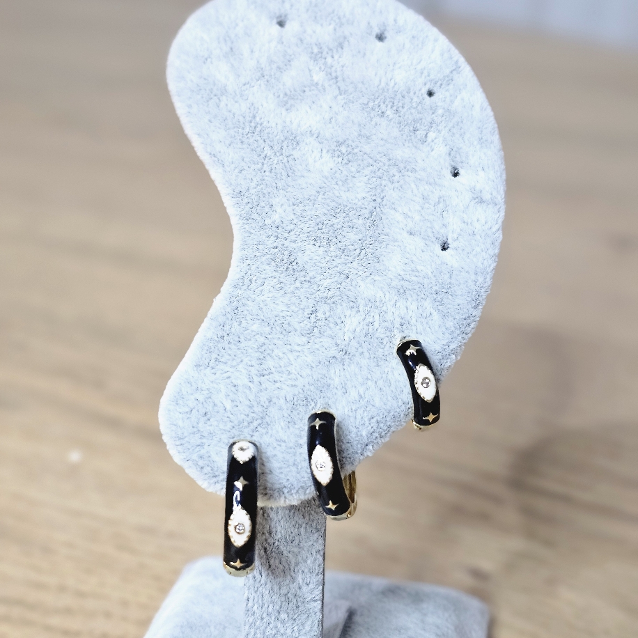 siyah renk mineli 3’lü halka küpe
