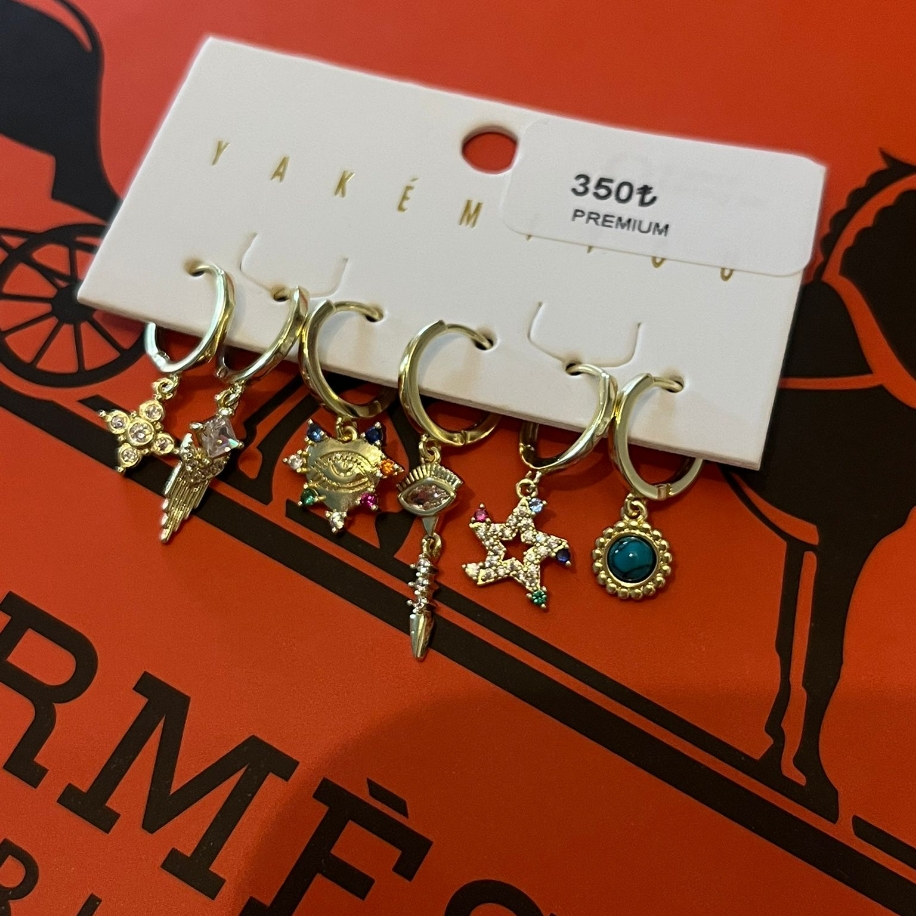 Yıldız ve göz detaylı gold 6lı mini halka küpe seti
